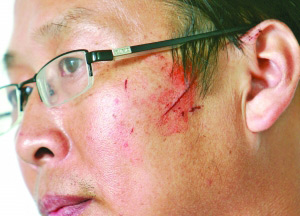 昨天,記者在新集中學(xué)見(jiàn)到陳宏濤,他的左耳上部腫得老高,顴骨處有一道約兩寸長(zhǎng)的傷口,鼻梁處也有幾道血口子。