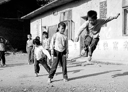 油落小學(xué)的孩子們在簡陋的操場上玩耍。 趙筑榮攝