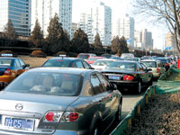 昨天是位于西城區(qū)的中央音樂學(xué)院的考級日,考場門前出現(xiàn)了眾人趕考的火爆場面。其中不少孩子都是乘坐家長開的“專車”來考試,浩浩蕩蕩的趕考車隊很快將中央音樂學(xué)院內(nèi)部的停車位占滿,而后又排到了學(xué)院西門外的二環(huán)輔路上,停放了百米多長。雖有交警疏導(dǎo),此路段仍然較為擁堵,車輛行進(jìn)十分緩慢。