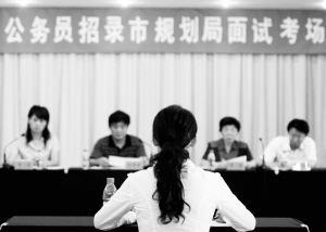 和往年不同的是,每名考生面試后,考官組當(dāng)場予以評分,并在下一名考生面試之后公布上一名考生的分?jǐn)?shù)?忌?jǐn)?shù)現(xiàn)場貼在考場走廊上。其次,我省對部分熱門崗位的面試,還首次進(jìn)行電視現(xiàn)場直播,如湖北省地稅局的面試現(xiàn)場。此外,每個考官組由7名考官組成,其中招錄單位4人,市里選派3人,還組織人大代表、政協(xié)委員及群眾代表到面試現(xiàn)場觀摩;各地、各招考部門紀(jì)檢監(jiān)察機構(gòu)設(shè)立投訴舉報電話,對各個環(huán)節(jié)全程監(jiān)督。