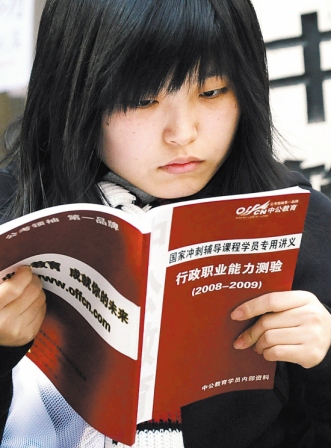 高等教育大眾化時(shí)代,公務(wù)員考試成了百萬(wàn)雄師爭(zhēng)過的新“獨(dú)木橋”。2009國(guó)家公務(wù)員考試已落幕,人們不僅念叨77萬(wàn)多人趕考1萬(wàn)多個(gè)崗位的盛況,也關(guān)心這場(chǎng)考試的命題思路,對(duì)接下來(lái)的省公務(wù)員考試會(huì)有哪些導(dǎo)向作用。因?yàn)樵诤芏啻髮W(xué)生眼里,“國(guó)公”就像練兵場(chǎng),真正的戰(zhàn)場(chǎng)在省公務(wù)員考試。