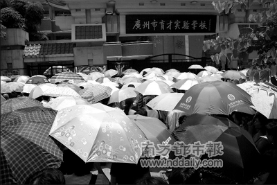 在育才實(shí)驗(yàn)學(xué)校門口,從佛山開車過來的李女士告訴記者,他們一個(gè)早上跑了3個(gè)地方才找到考場,“一開始以為是育才中學(xué),跑到那邊才知道弄錯(cuò)了,后來又跑去了附近的第109中,第三次才找到這里。”
