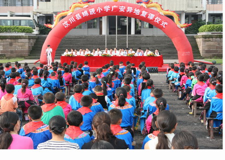 處于5.12汶川大地震震中區(qū)的綿虒小學(xué)在這次地震中所有教學(xué)建筑都受到不同程度損害,9個班443名師生停課已達3個月之久。“這里的學(xué)習(xí)條件比我們哪里好多了,感謝廣安市區(qū)的叔叔阿姨給我們提供了這么好的學(xué)習(xí)和生活條件,我一定珍惜這來之不易的學(xué)習(xí)機會,好好學(xué)習(xí)! 坐在寬敞明亮的教室里,手握語文書,綿虒小學(xué)五年級學(xué)生陳思雨向記者表達了自己最真摯的心聲。