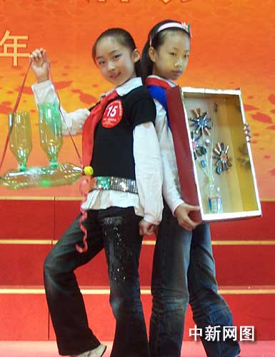 浙江少先隊員展示環(huán)保節(jié)能金點子。 作者:趙曄嬌