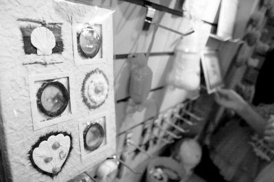 昨日,沙坪壩,老板娘正在整理用安全套做的衣服 吳珊 攝