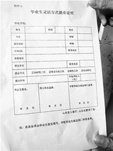 該校機(jī)械工程系一名學(xué)生告訴記者:“我們明年7月才畢業(yè),這兩天班主任給我們每人發(fā)放了一張‘畢業(yè)生靈活方式就業(yè)證明’,讓我們自己到校外聯(lián)系單位,并讓用人單位在這張證明上蓋章。班主任老師說了,交不上這份就業(yè)證明,學(xué)校就不給畢業(yè)證。我們現(xiàn)在很為難,因?yàn)橛萌藛挝坏墓虏皇请S便就給蓋的。”
