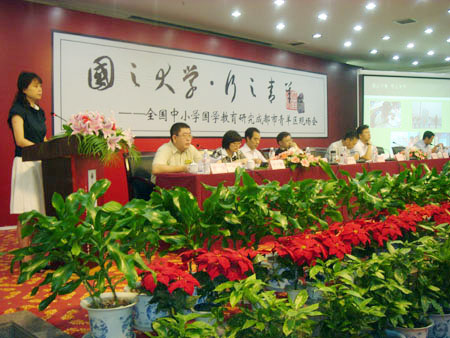 7月8日,全國(guó)中小學(xué)國(guó)學(xué)教育研究成都市青羊區(qū)現(xiàn)場(chǎng)會(huì)在蓉召開(kāi),來(lái)自北京、青島、重慶等地的上百名專(zhuān)家代表就國(guó)學(xué)教育在中小學(xué)校園內(nèi)的開(kāi)展進(jìn)行了交流討論。據(jù)中國(guó)教育部語(yǔ)言文字應(yīng)用管理司司長(zhǎng)王登峰透露,有關(guān)部門(mén)準(zhǔn)備邀請(qǐng)歌星演唱經(jīng)典詩(shī)詞,以契合中小學(xué)生的年齡特點(diǎn)和心理需求。