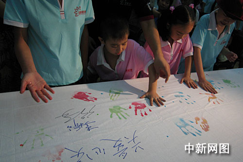 中新網(wǎng)武漢7月13日電 (段娟娟 艾啟平)13日下午,“關(guān)愛心靈、健康成長”——關(guān)懷受艾滋病影響少年兒童第二屆夏令營在武漢舉行開營儀式。開營式上,小營員們舉行了“心連心”結(jié)對互助留簽名手印活動(dòng),并得到了贈(zèng)送的書包。