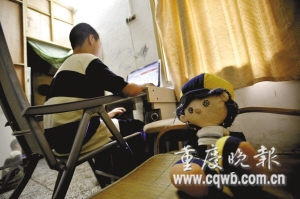 記者看到,程程用電腦在聊QQ,并能熟練地下載免費電話撥打!八螂娔X基本是自己學(xué)的!崩紫壬f,因為家庭原因,程程幾乎沒讀書。