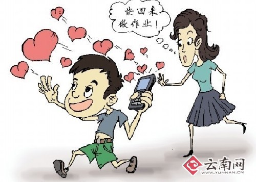 “喂,你怎么還不來啊,小青(化名)說她喜歡你,在等著你呢!笨】寢屄牭诫娫捘穷^傳來女孩的聲音,頓時(shí)臉色大變,在一旁玩游戲的兒子見勢(shì)不妙,一把搶過電話搪塞幾句后,匆匆掛了電話。此時(shí),俊俊媽媽才意識(shí)到,兒子在長“翅膀”了,曾經(jīng)為在街上看見小情侶手牽手著急的她,如今在擔(dān)心哪天就輪到自己的兒子上場“表演”了。近日,本報(bào)記者聆聽了俊俊媽媽的擔(dān)憂后,對(duì)中小學(xué)生用手機(jī)、網(wǎng)絡(luò)等方式談情說愛的現(xiàn)象進(jìn)行了走訪。