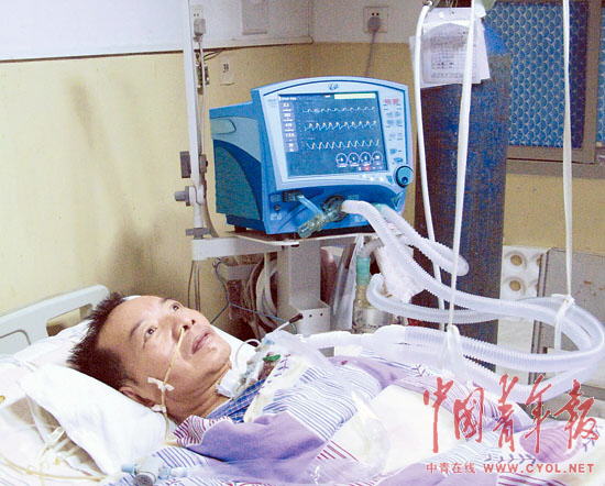 張?jiān)谠忌狭撕币姷倪\(yùn)動(dòng)神經(jīng)元病。不能說話,也不能進(jìn)食,甚至無法呼吸。于是幾根白色的塑料管從藍(lán)色的呼吸機(jī)里伸出來,高高地吊起,插進(jìn)開胸后的氣管,成為支持他呼吸的唯一方式。