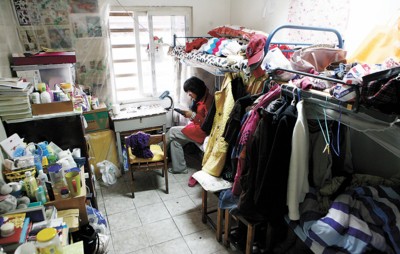 “怎么不想!住宿舍畢竟要便宜些啊。 ”一個女孩邊整理床鋪邊轉(zhuǎn)過頭說,“上海的房價貴,房租也貴,一套一室一廳的公寓就要2000元。我的工資才1000多元,只能先在這里住著,等將來找份好點工作再搬家。 ”