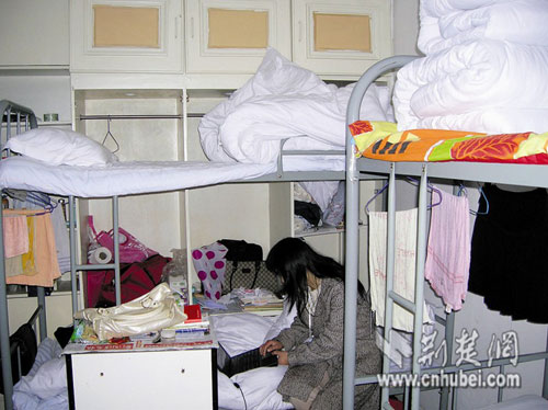 湖北工業(yè)大學(xué)商貿(mào)學(xué)院畢業(yè)的李明,月薪1200元,他的住處幾乎和楊雪梅一樣簡單,那是關(guān)山新村的一間不到10平米的私房,房里沒什么家具,只有一張床,一張桌,3個(gè)破舊的椅子和一個(gè)舊貨市場上買來的簡易衣柜。每天白天,他拼命做銷售,到晚上,他就在這棟住著20多個(gè)大學(xué)生的出租房里,打著鼾聲入夢。