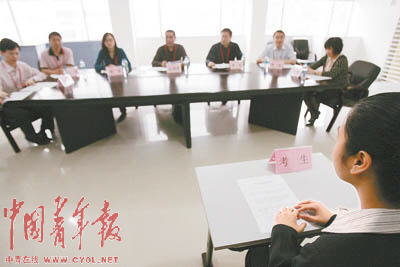 早上8點(diǎn)半,一百多名考官已經(jīng)在考場三樓的階梯教室等待抽簽。此時的一樓,1000多名考生已經(jīng)排隊(duì)簽名進(jìn)場候考。每個人面試的時間都是12分鐘,由于面試成績在總成績中占40%,因此,這12分鐘將在很大程度上決定面試者的未來。