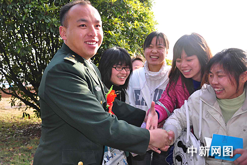 中新網(wǎng)南昌3月26日電(王劍 張曉朦) 3月26日,華東交通大學(xué)“日新論壇”上大學(xué)生們討論的焦點不是“周董”,也不是NBA的比賽,而是“槍王”何祥美。此前一天,“何祥美同志先進事跡報告會”在該校舉行,何祥美被現(xiàn)場女大學(xué)生高呼“英雄哥哥”并索要簽名。