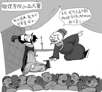 清華理工班劇這種“蔫兒壞”的惡搞傳統(tǒng),被材科系06級學(xué)生于超繼承并發(fā)揚(yáng)光大。他主創(chuàng)的班劇《材科傳奇》同樣走寫實(shí)路線,極盡搞笑之能事,在校園里很有些“粉絲”。