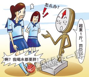 “一些學生依然喜歡零食,有的甚至一周長了七八斤,出于對學生前途的考慮,于是在本學期開始后不久向?qū)W生宣布了長胖一斤罰款50元的規(guī)定!崩铉髡f,這一規(guī)定宣布后,學生對體重控制就好多了。