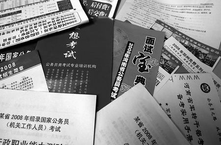 已經(jīng)在某企業(yè)單位工作一年的黃中(化名)則是考公務(wù)員大軍中的一員,他報考了今年河南省直機關(guān)公務(wù)員。為了“提高”自己,需要到社會上的培訓班“補補課”。他報了一個考前輔導班,花費了1100多元。據(jù)說,還有沖刺班、面試班、保過班等各種名目,如果再參加,還需要花費數(shù)千元。“參加這樣的考前輔導班是否有用?”面對記者的詢問,黃中一臉漠然,“錢是花了,但心里面沒有底。”
