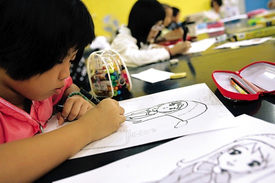 廣州青年文化宮李少琬老師告訴記者:“一張紙一只筆就能帶給孩子無窮的樂趣。而且小孩能在畫畫的過程中得到來自同伴和老師的表揚(yáng)和關(guān)注,這對(duì)于他們更為重要!碑(dāng)李老師告訴班上學(xué)生現(xiàn)在美術(shù)也能考級(jí)時(shí),多數(shù)孩子表現(xiàn)出很高的熱情,紛紛舉起小手要報(bào)名。但第二天,大多學(xué)生都拉著個(gè)臉說“媽媽不給報(bào)”、“爸爸不給報(bào)”。