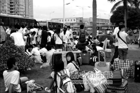 前天中午,廣東輕工職業(yè)技術(shù)學院的300多名大學生到深圳打暑期工,卻發(fā)現(xiàn)待遇與招工時的承諾相差甚遠。錢沒賺到,還交了100元的包車費,學生們無奈滯留在深圳寶安區(qū)松崗文化廣場。最后,街道辦工作人員墊錢雇車送同學們返校,組織者也同意把包車費退回。