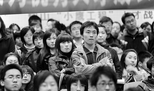 受世界金融危機影響,今年就業(yè)形勢比較嚴峻。記者隨機采訪了幾個前來應(yīng)聘的大學(xué)生,小張對記者說:“一些往年都到高校招聘的大企業(yè)今年都不招人了,而今年仍然招人的單位所能提供的職位也明顯少了許多,我們希望能在這里找到一些機會!