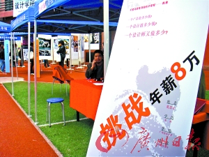 “據我所知,從沒有人搞這種嘗試,”小莫自信地說,“擺攤”之前,他曾經對設計類學生的就業(yè)情況做了一番了解,發(fā)現招聘單位以小企業(yè)居多,“首先從工資上,就感到小企業(yè)對設計并不重視,”他說,很多小企業(yè)都打出1000~2000元每月的工資,所以他執(zhí)意打出“年薪8萬”的要求,也是想提起企業(yè)單位對設計的重視。