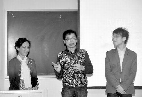 昨晚8時許,四川師范大學大學生心理健康教育服務中心和愛白成都青年同志活動中心邀請吳幼堅、鄭遠濤及其男友來到校區(qū),為大學生聯(lián)手上了一堂同性戀話題的課。