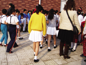 昨天下午,記者和宋女士一起來到比賽所在的虎山路小學(xué),在這里,三十多支參賽隊伍的上千名學(xué)生都要穿著夏裝跳集體舞。
