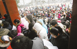 昨天“冷”的不僅僅是北京的天,研究生入學(xué)考試也遇到了少有的“降溫”現(xiàn)象。昨天,有120萬人參加了全國碩士研究生入學(xué)考試初試,這是自2001年以來,首次出現(xiàn)報(bào)名人數(shù)呈下降趨勢的一年,相較于去年的128.2萬,降幅達(dá)6.39%。共有21萬余人報(bào)考了2008年北京碩士研究生,這也比去年減少7127名,降幅為3.2%。雖然報(bào)考人數(shù)有所下降,但名校的競爭則更加激烈。