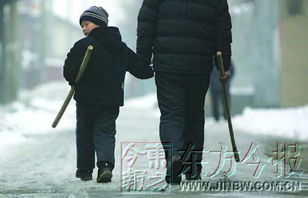 24日上午,記者趕到東金店村時,在街上隨處可見手拿棍棒、鐵锨的村民。學(xué)校門口,放學(xué)時,來接孩子的是清一色手拿棍棒的家長。