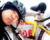 由于沒有買到回老家鄭州的火車票,北航的大二學生高富松決定騎自行車回家。他1月22日從北京出發(fā),歷時7天抵家,目睹了冰雪對沿途居民的影響。昨天,高富松興奮地告訴記者,雖然路上經(jīng)歷了不少困難,但堅持到最后的精神讓自己平安到家,而且這次經(jīng)歷也考驗了自己的耐力。