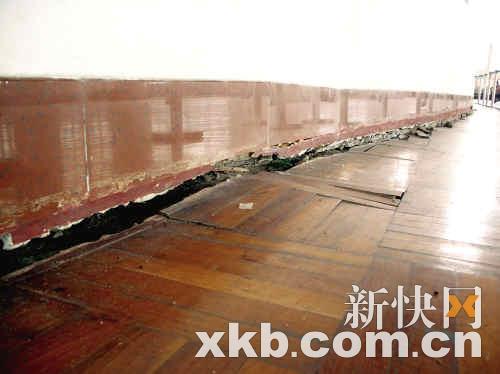 ■該校籃球館地面下沉情況非常嚴(yán)重。 本版攝影:王華平
