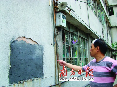 紅星幼兒園位于禪城區(qū)福寧路上,屬祖廟東華里拆遷范圍的拆遷戶(hù)。昨日上午記者趕到該幼兒園時(shí),由于電線(xiàn)門(mén)窗等都遭到破壞,幼兒園正準(zhǔn)備搬遷到其他地方。記者發(fā)現(xiàn),該幼兒園的后墻上有一個(gè)約1平方米大小的新修補(bǔ)的墻壁,與其它周?chē)鷫Ρ陬伾煌。而該幼兒園主管梁先生氣憤地說(shuō),這個(gè)新修補(bǔ)的地方原本是一扇窗戶(hù),前天上午拾荒者就是砸爛該窗戶(hù)進(jìn)入院內(nèi)偷竊的,所以后來(lái)用磚和水泥將該處封了。