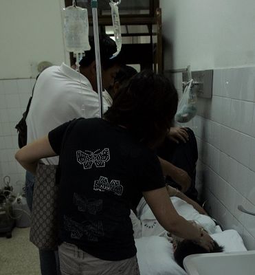昨日下午2時(shí)40分,長(zhǎng)海醫(yī)院洗胃室內(nèi),身穿印有復(fù)旦實(shí)驗(yàn)中學(xué)字樣校服的賈偉躺在病床上,已經(jīng)蘇醒,但十分虛弱,無(wú)力說(shuō)話。他的奶奶和父母守護(hù)在病床前,默默注視著。