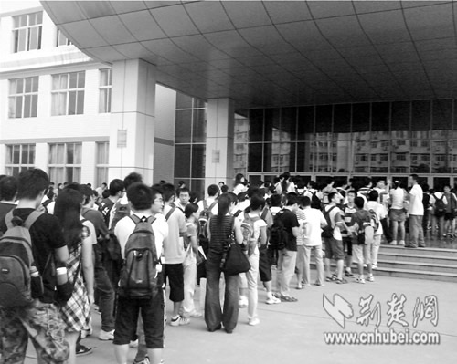 圖為:9月16日早7時(shí),東十二樓門外排隊(duì)等待占座的學(xué)生