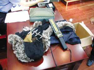 被查獲的高科技作弊工具及嫌疑人穿的“作弊大衣”。學(xué)濤 陳詠 攝