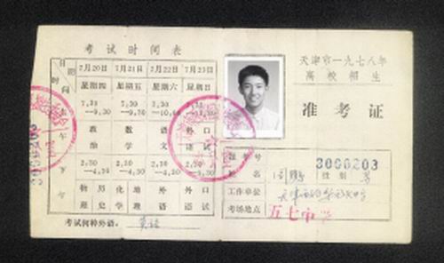 泛黃的卡片上,“天津市一九七八年高校招生準(zhǔn)考證”幾個(gè)黑體字清晰依舊。周鵬告訴記者,在那個(gè)年代,對(duì)于普通的農(nóng)家子弟而言,若想改變命運(yùn),最有效的方式就是高考。