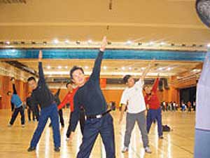 馬步弓身、大鵬展翅、輕邁舞步……如果你認(rèn)為這是舞蹈比賽或功夫表演,那你就錯(cuò)了,這是北京中小學(xué)體育老師練習(xí)新廣播體操的現(xiàn)場(chǎng)。昨天(12日),西城區(qū)400余名中小學(xué)體育老師在北京八中參加了第三套廣播體操的集中培訓(xùn)。據(jù)了解,對(duì)于西城、海淀等“動(dòng)手”較早的區(qū)縣,中小學(xué)生下月將可“嘗鮮”做起新廣播體操。