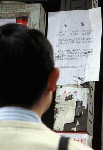 據(jù)父親劉先智(化名)介紹,他和妻子都在成都東郊一家大型國有企業(yè)上班。他們對女兒贊不絕口,從小學、中學到大學,女兒一直都沒讓家里操過心,2005年大學畢業(yè)后通過公招考進了成都某機關上班。現(xiàn)在女兒已經(jīng)26歲了,還沒有男朋友,看著女兒身邊的同齡同學和朋友有的結婚、有的生子,他們一天比一天著急!芭⒆舆^了28歲找對象就不容易了!現(xiàn)在最不放心的,就是女兒的婚姻大事。”劉先智說,他們都是很傳統(tǒng)的家庭,結交的圈子都不寬,第一次張貼這種尋婿啟事,也是抱著試一試的態(tài)度。