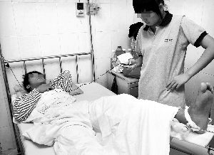 記者在病房內(nèi)看到了這名留院治療的學生。他的左小腿纏著厚厚的繃帶,疲憊地躺在病床上,面對外人問話一言不發(fā)。記者從診斷書上看到,這名學生叫鄭×,18歲,左脛腓骨中下段骨折。陪護同學后來告訴記者,他們是07級藥物制劑班的學生,班上共7名學生因打架受傷入院,其中6人輕微皮外傷,在包扎后都已回校。