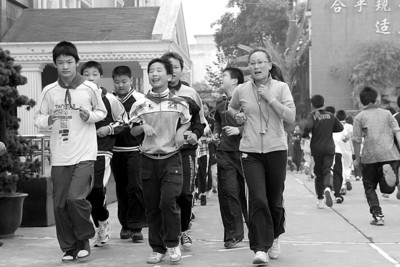 敬業(yè)中學(xué)地處黃浦區(qū)中心地段,是名副其實的“迷你校園”,1500名學(xué)生擠上一個小操場跑步,根本不現(xiàn)實。該校德育主任諸偉說,學(xué)校已做好“長跑方案”,擬用50米往返跑代替2000米長跑,另外還將開展“跳踢比賽”,即跳長繩、短繩、花式繩和踢毽子等活動!拔覀円哺杏X初中生一次性加到1500米有難度。 ”盧灣區(qū)中山學(xué)校副校長徐群力說,學(xué)校打算為長跑設(shè)一個“準(zhǔn)備期”,給學(xué)生一個適應(yīng)過程,“以前我們一直做兩遍操,現(xiàn)在改成做一遍,用一遍操的時間來跑步,天冷了,就用長跑替代做操!泵刻煜挛3:30過后,學(xué)校還會以年級組為單位開展小型多樣的比賽,例如小型籃球友誼賽、跳長繩比賽和踢毽子比賽。