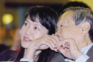 應(yīng)華英文教基金會之邀,享譽世界的著名物理學家、諾貝爾獎獲得者楊振寧博士昨日(10月27日,下同)攜少妻翁帆走進東大。這回楊振寧說起了物理學的誘惑,談起中國人與諾貝爾,甚至為老朋友吳健雄叫屈,卻避口不談“翁帆和我”。然而,86歲的老先生講到盡興處還是說漏了嘴:我24小時保持思考,有時睡到12點忽然像孩子似的對翁帆說我想出來了。