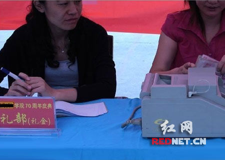 10月28日,有網(wǎng)友在紅網(wǎng)論壇發(fā)布一篇題為《某大學(xué)令人汗顏的校慶 現(xiàn)場點鈔機一字排開》的帖子,內(nèi)容是湖北民族學(xué)院建校七十周年慶祝大會現(xiàn)場,網(wǎng)友對會場擺放的點鈔機產(chǎn)生了興趣,并戲稱這是“最雷人的高校校慶”。
