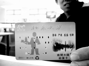 岳同學(xué)是北京大學(xué)的在校研究生。據(jù)他介紹,去年下半年,由于市場(chǎng)上肉價(jià)菜價(jià)上漲,為了限制食堂的飯菜價(jià)格,學(xué)校便給食堂發(fā)放補(bǔ)貼。這樣,校內(nèi)食堂的飯菜相對(duì)于校外就便宜許多。以往,食堂內(nèi)對(duì)外銷售不同面值的一次性飯卡,校外人士如購買這種飯卡,其面值金額中會(huì)扣除15%的管理費(fèi)。9月18日,北京大學(xué)向全校餐飲系統(tǒng)下達(dá)停辦一次性飯卡、禁止使用現(xiàn)金的通知,一次性飯卡“從此消失了”!耙朐谑程贸燥垼荒苡迷谛I胄r(shí)辦的飯卡。”