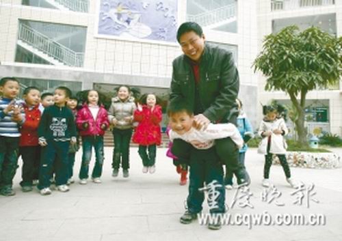 前日(12月2日)下午2時,開縣漢豐街道第三中心小學(xué)操場,一中等個頭,肩寬體胖,僅穿一件棉毛衫的男孩,正抱著同學(xué)不停旋轉(zhuǎn)。抱著同學(xué)轉(zhuǎn)圈的胖小子是該校一年級7班學(xué)生徐緯,圍成半圓形觀看的同學(xué),則不停拍手為他鼓勁!澳銈儾粨乃麄儠さ箚幔俊泵鎸τ浾咛釂,孩子們異口同聲回答:“不擔心,他力氣大得很!