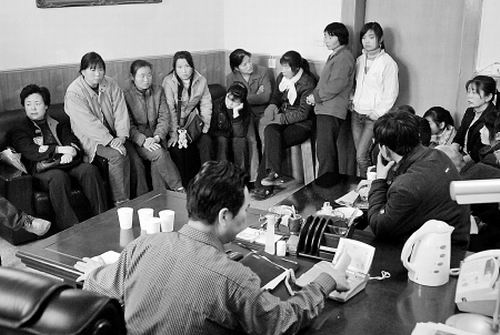 從昨天早上8時(shí)到下午5時(shí)30分時(shí),職工們一直圍坐在馬院長(zhǎng)辦公室里,沙發(fā)、凳子不夠坐,一些人干脆蹲在辦公室門外!盁o(wú)法辦公,不得離開,也不能出去吃飯!瘪R金玉說(shuō)。