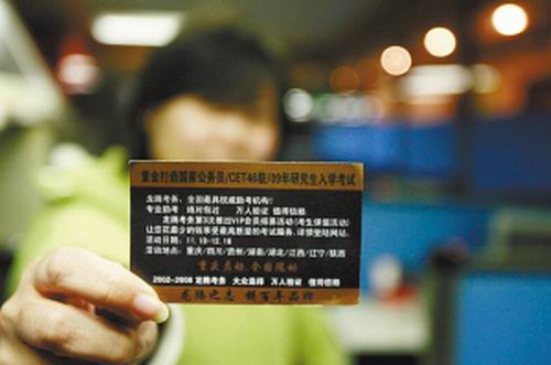 記者隨即按照卡片上的網(wǎng)站登錄,發(fā)現(xiàn)網(wǎng)站上的業(yè)務(wù)范圍涉及了多類考試,包括大學(xué)英語、司法考試、注冊會計(jì)師考試等。