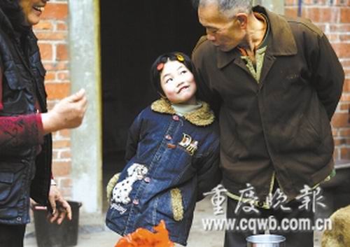 本月10日,記者來到張婭位于永川區(qū)雙竹鎮(zhèn)大竹溪村的家。院壩里,她正懂事地替爺爺剝花生。見到記者,她警惕地躲在爺爺身后,怯怯地操著普通話問:“他是誰呀?”