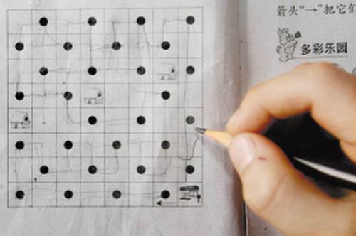 孩子做不出來(lái),請(qǐng)教爸爸、媽媽,他們上過(guò)大學(xué)。兩個(gè)大人仔細(xì)讀了一遍題,接著在圖表上用鉛筆輕輕地畫(huà)了起來(lái),不是繞不過(guò)房子,就是漏投了那么一兩家!斑是問(wèn)問(wèn)你姥爺吧,他教過(guò)數(shù)學(xué)!19日晚,這道題又傳到了老韓的手里。