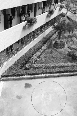 昨日中午12時許,記者趕到事發(fā)學(xué)校。在事發(fā)宿舍樓2號樓南側(cè)圍墻位置,仍可看見地面上殘留有一大攤血跡。相關(guān)部門工作人員正在宿舍樓內(nèi)進(jìn)行調(diào)查。據(jù)該樓一名學(xué)生介紹,他們在凌晨6點(diǎn)多聽到外面很吵,跑出來一看,才知道是有人跳樓了,隨后很快就看到救護(hù)車和警車陸續(xù)趕到現(xiàn)場,據(jù)說跳樓的就是該校學(xué)生,已經(jīng)當(dāng)場死亡。